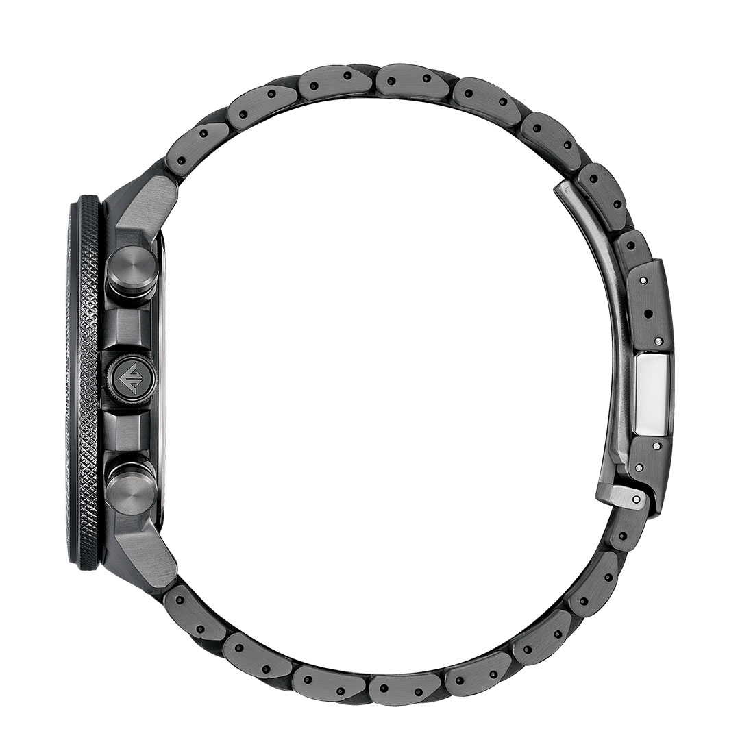 Black dial and dark steel strap